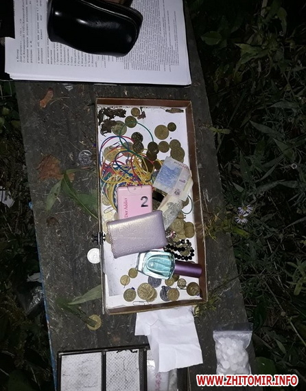 «Близько 18 години на централізований пульт управління поліції охорони в області надійшов сигнал про спрацювання «тривожної кнопки» в одній з житомирських церков. Буквально за кілька хвилин до храму прибув черговий наряд правоохоронців. Від охоронника стало відомо, що один з відвідувачів церкви вихопив і виніс з приміщення коробку з жертовними грошима. Під час обстеження прилеглої до храму території, на кладовищі у кущах, поліцейські помітили підозрілого чоловіка, який похапцем чимось набивав кишені. Як виявилось кількома хвилинами згодом – гривневими купюрами та монетами з викраденої жертовної скриньки. Також поряд з чоловіком були знайдені й інші речі з церкви», - йдеться у повідомленні.