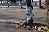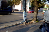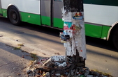 8 жовтня опору в тому ж жалюгідному стані побачила кореспондент Житомир.info. Опора зі знаком зупинки автобусів покришена біля основи та тримається лише на залізних прутах.