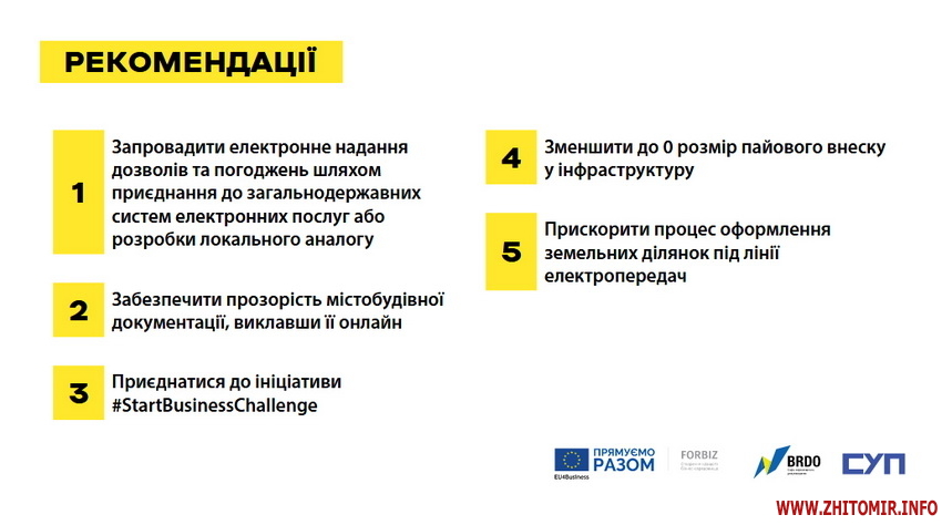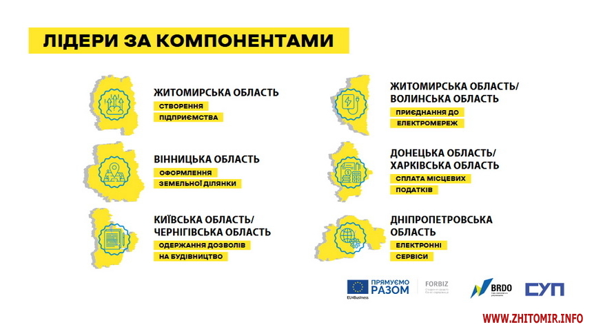 За результатами рейтингу «Regional Doing Business. 2018», розробниками якого вдруге стали Офіс ефективного регулювання (BRDO) та Спілка Українських Підприємців (СУП), Житомирська область входить до трійки областей, де найкомфортніше вести бізнес.