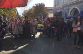 Нагадаємо, таке національно-обрядове дійство у Житомирі проходить третій рік поспіль. У минулі роки весілля святкували в сквері на Замковій горі, цьогоріч його «переносли» на Михайлівську.