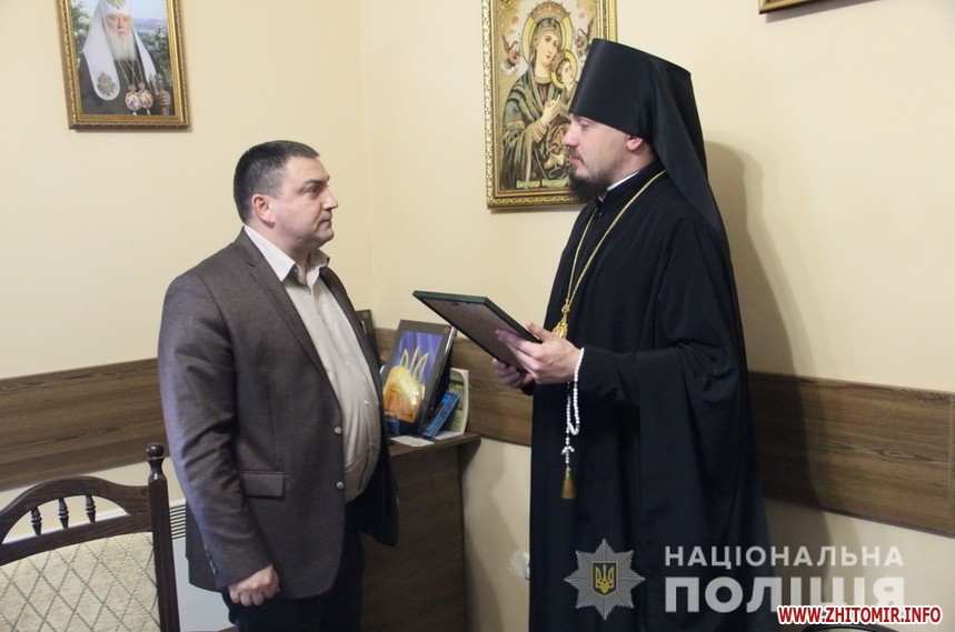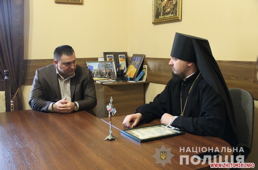 «16 жовтня начальник Головного управління Національної поліції в області В’ячеслав Печененко провів робочі зустрічі з митрополитом Житомирським та Новоград-Волинським Никодимом та єпископом Житомирським та Овруцьким Паїсієм. Предметом обговорення стало об’єднання зусиль у недопущенні розпалювання конфліктів та ворожнечі на релігійному ґрунті. Настоятелі конфесій Житомирської єпархії Української православної церкви Київського та Московського патріархатів висловили підтримку керівникові поліції щодо недопущення будь-яких провокацій, пов’язаних із віросповіданням жителів регіону», - повідомляє відділ комунікації.