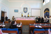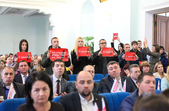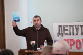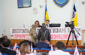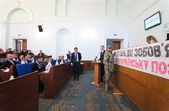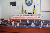 Перед початком роботи депутатів активісти розгорнули перед трибуною великий транспарант, на якому зазначалося «Депутати, ви зобов’язані мати проукраїнську позицію!». На трибуні лежали букети для родин афганців, які отримали 5 сертифікатів на житло.