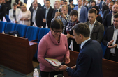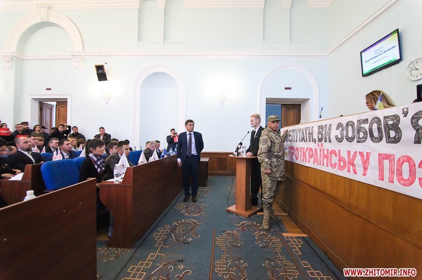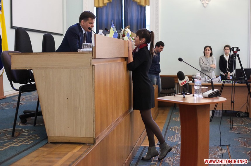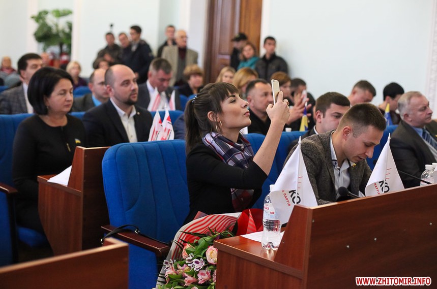 На сесії представили нового депутата від БПП «Солідарність» Владислава Пучича, вислухали численних активістів та учасників КВН, які прийшли просити «Почесного громадянина Житомира» для загиблої комедійної акторки Марини Поплавської . Звання житомирянці присвоїли одноголосно.