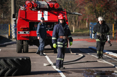 Якщо за день немає викликів, а таке теж буває, пожежні тренуються та спеціальному майданчику чи в класах.