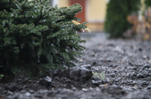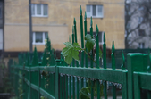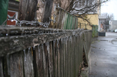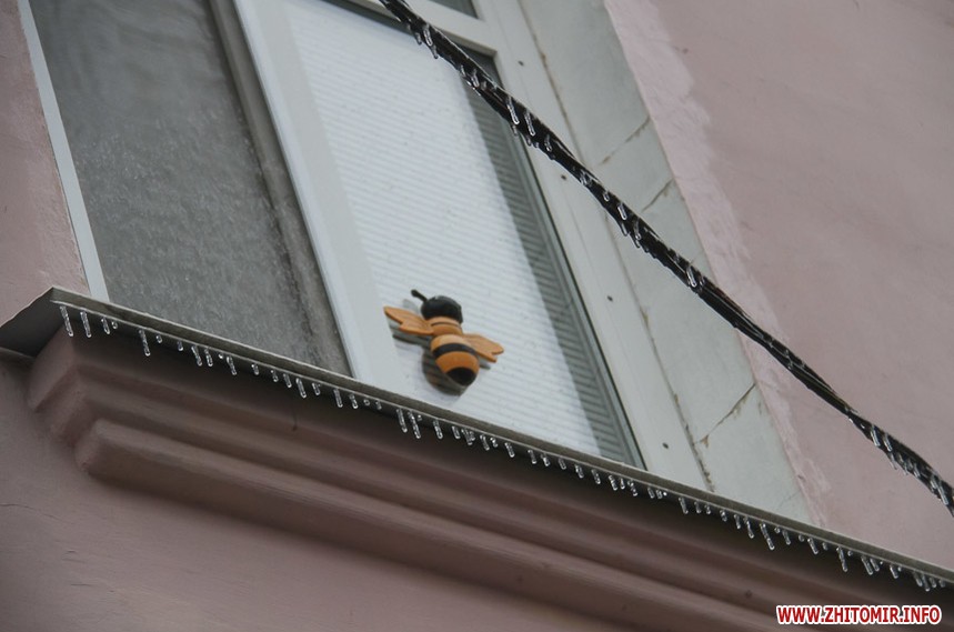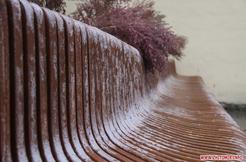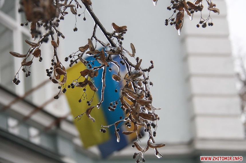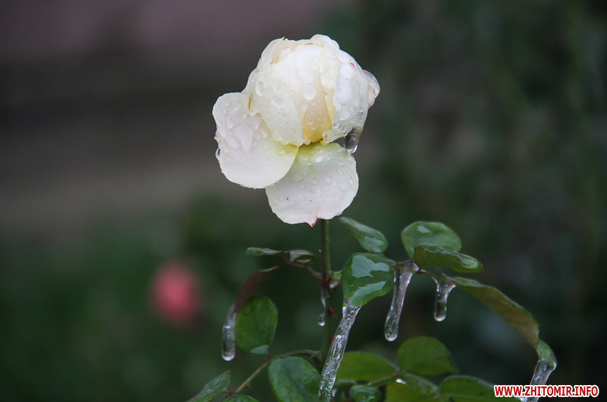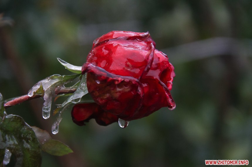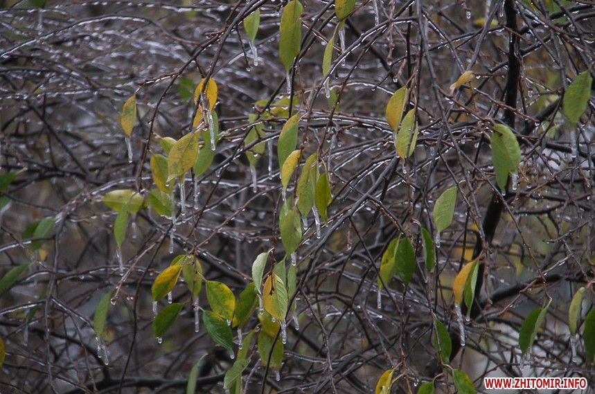 Дощ та невеликий мороз «заглазурували» місто: де-не-де видно маленькі бурульки і квіти, що покрилися прозорою, крижаною «сорочкою». До Житомира поступово наближається зима…