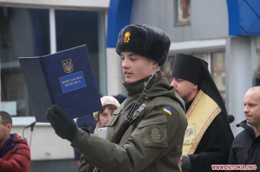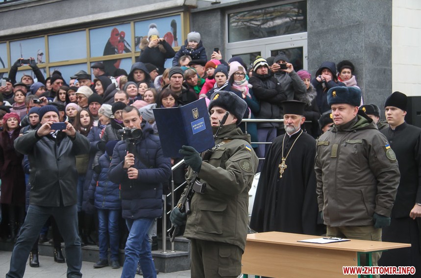 17 листопада на пішохідній вулиці Михайлівській у Житомирі, біля пам’ятника митрополиту Іларіону (Івану Огієнку) склали присягу військові-новобранці Національної гвардії України.