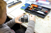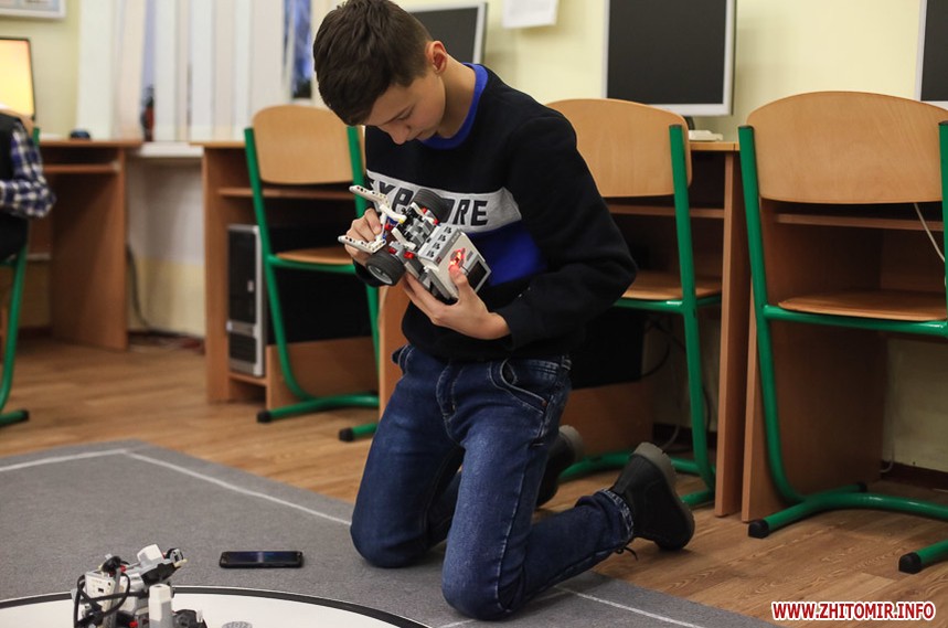 Житомирські школярі у вільний від уроків час не лише «сидять» у планшетах і телефонах, а й, як десятиліття тому – паяють, конструюють, програмують і майструють роботів на пультах управління.