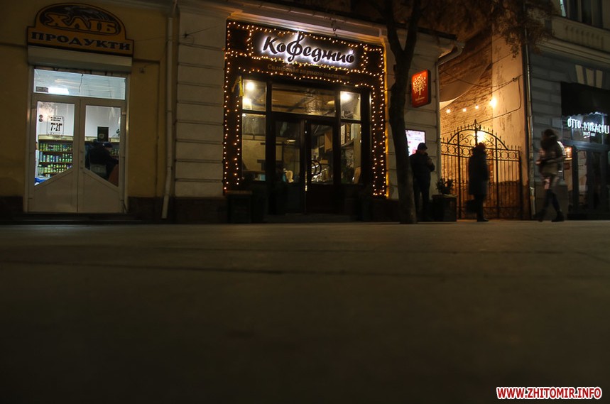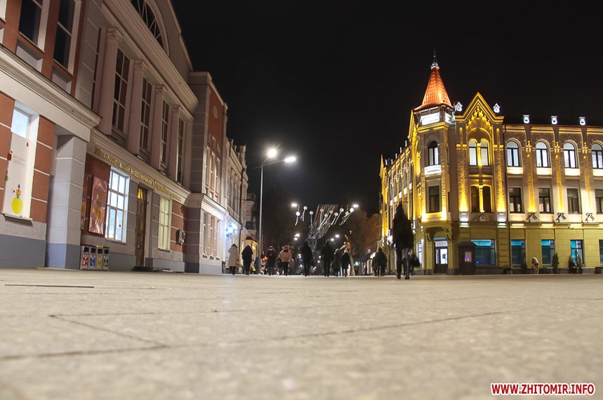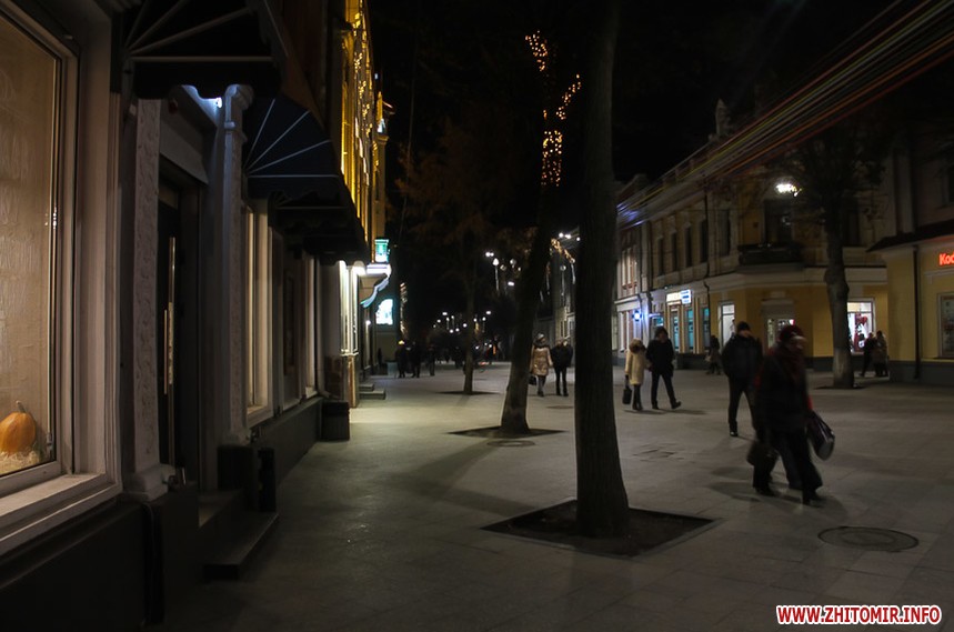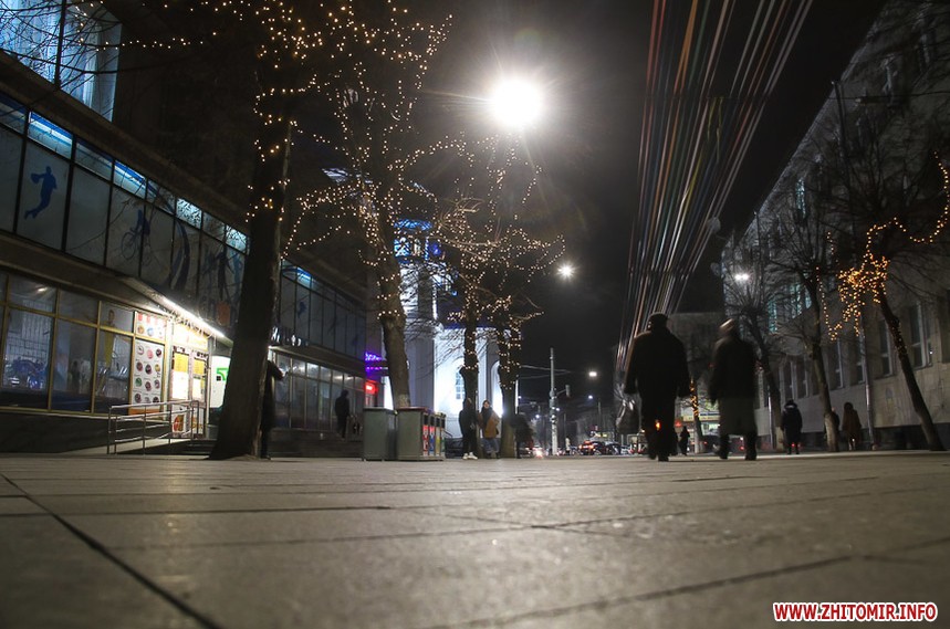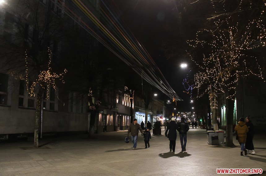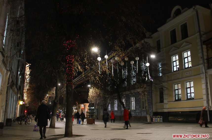 Фотограф Житомир.info прогулявся вечірньою Михайлівською в пошуках новорічного настрою. Проте пішохідна вулиця Житомира, мов завмерла, в очікуванні свого нового різдвяного вбрання.