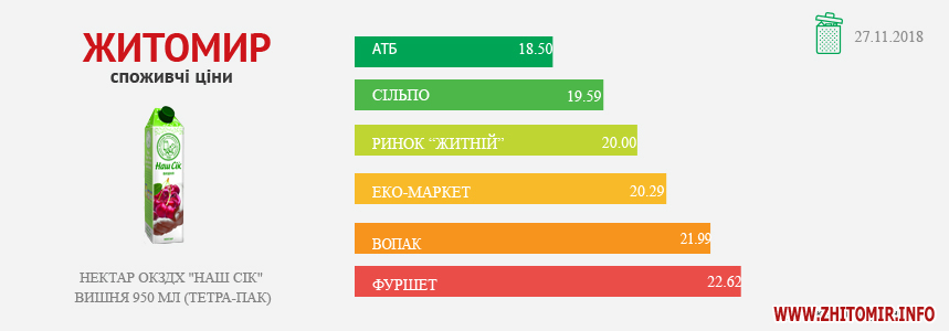 МОНІТОРИНГ ЗДІЙСНЕНО МЕТОДОМ КОНТРОЛЬНОЇ ЗАКУПІВЛІ, У МІСЦЯХ ПРОДАЖУ: AТБ, пр. Миру, 15 А, Ринок "Житній", майдан Житній ринок, Сільпо, майдан Житній ринок, 1,Вопак, вул. Київська, 87,Фуршет, вул. Вітрука, 9 а, ЕКО-маркет, вул. Мала Бердичівська, 2/7