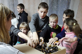 «Зазвичай ми готуємося дуже серйозно до цього заходу. За місяць-півтора телефонуємо у різні дитячі будинки і запитуємо, що необхідно їм, тому що хочеться допомогти, а справжня допомога - це та, якої потребують. Наприклад, у Коростишівську школу ми привезли фрукти, цукерки, ми привезли канцелярські прилади, тому що ми знаємо, що у них є художня студія, і вони просили якраз поповнити запаси», - розповідає менеджер з маркетингу ЖКК Тетяна Міненко.