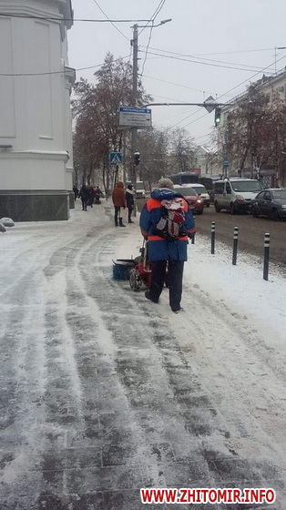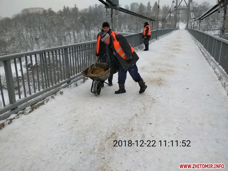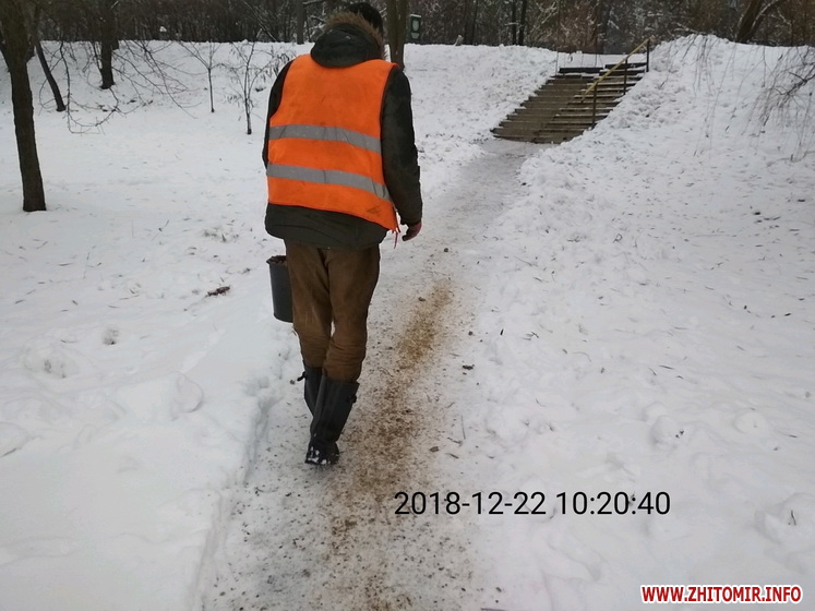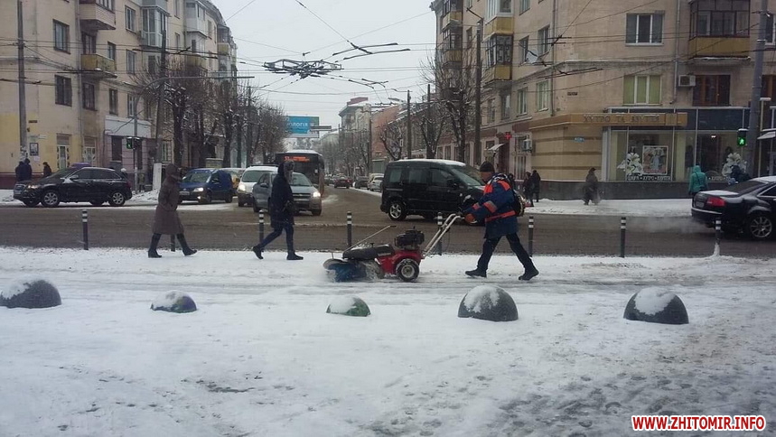 «З ранку 22 грудня, з початком снігопаду, комунальні служби міста заступили на чергування. Техніка комунальних підприємств «Управління автомобільних шляхів», «Експлуатації штучних споруд», «Зеленбуду» проводить превентивну обробку доріг», - повідомляє прес-служба Житомирської міської ради.