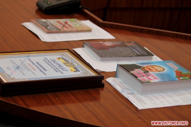 «Володимир Ширма привітав та вручив відповідні дипломи за І місце Олександру Тарабукіну за книгу «Житомир у давнину: Історико-археологічні нариси», ІІ місце – Валентина Степанюк і її книга «Голос пам’яті» та ІІІ місце – Валентин Вітренко з книгою «Педагог, спрямований у майбутнє», - інформує облрада.