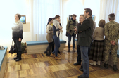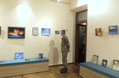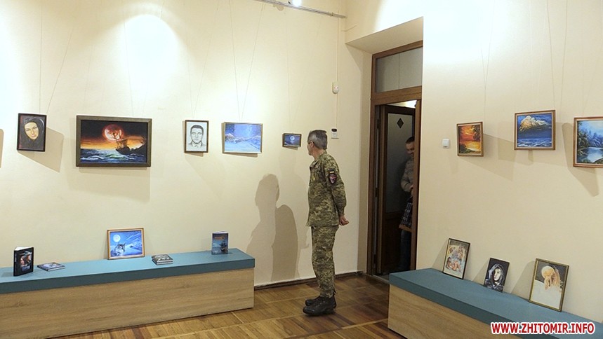 Експозицією можна не лише милуватися, а й придбати. Автор розповідає: вилучені кошти підуть на розвиток творчості талановитих військовослужбовців.