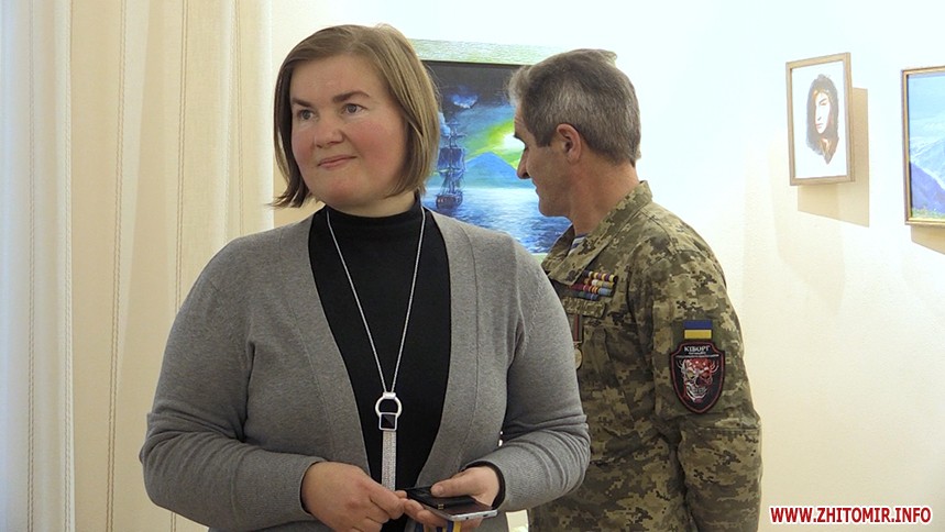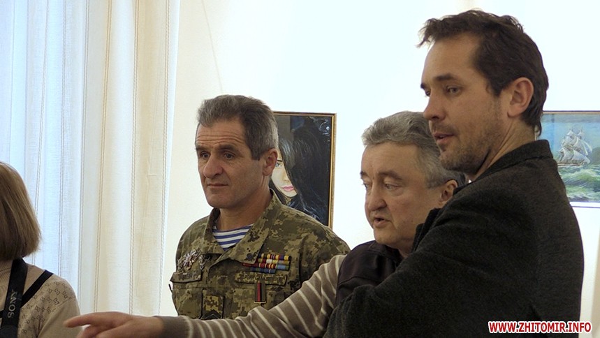 «Рік тому я проходив психологічну реабілітацію в Карпатах, у творчій Криївці у Віталіни Маслової. Одним із завдань реабілітаційного відпочинку було намалювати фарбами картину. До того я взагалі не знав, як воно робиться. Спробував, і відтоді раз-два у місяць відпочиваю ось так, душею. Беру фарби, змішую їх і малюю картини. На виставці більше 20 картин, частково портрети, природа і картини маріне. Це моя перша спроба малювати фарбами», - розповідає автор проекту «Козацькі байки та історії АТО» Василь Піддубний.