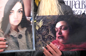 Бердичівляни, які приїхали на підтримку родини загиблої, привезли з собою фото та плакати із зображенням Юлії Козак.