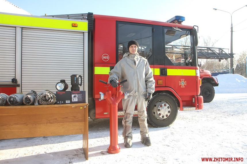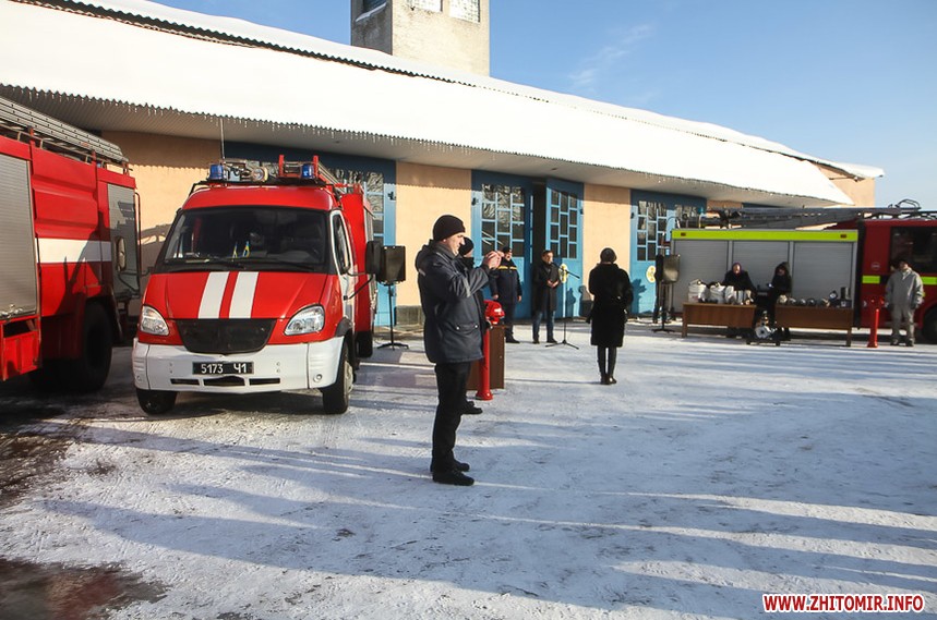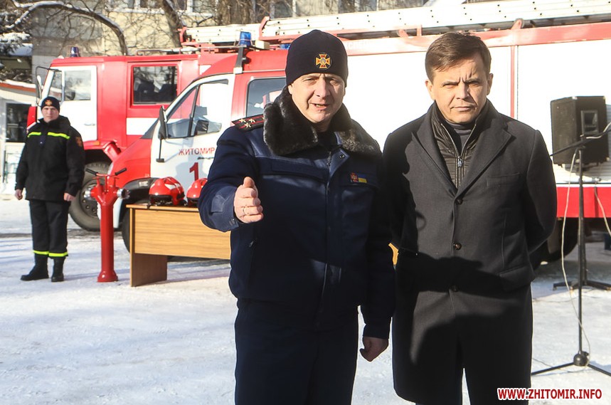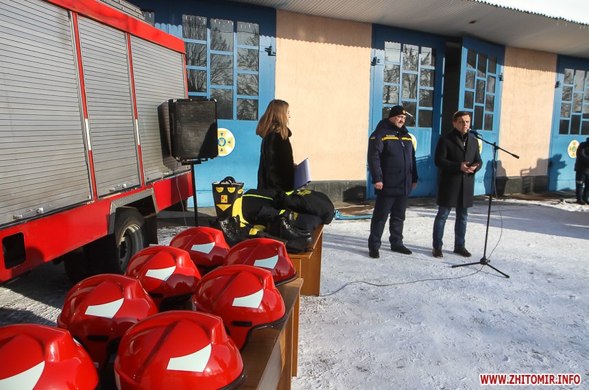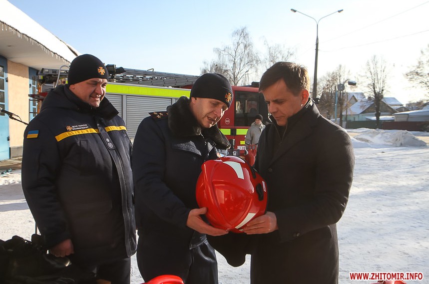 У Житомирі 24 січня на території 1-ї Державної пожежно-рятувальної частини за адресою вул. Східна, 86 відбулася урочиста церемонія передачі пожежно-рятувального спорядження міським головою Сергієм Сухомлиним вогнеборцям обласного центру.