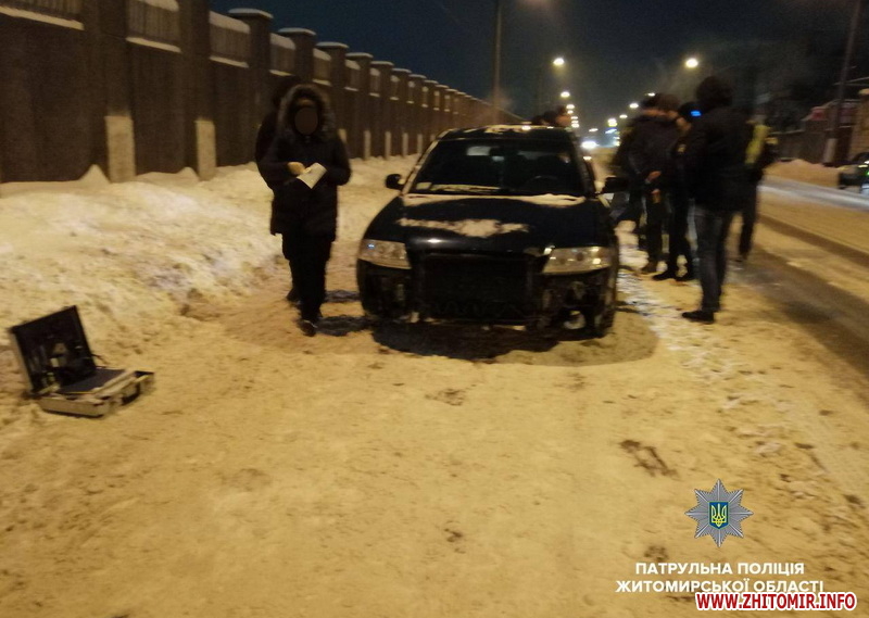 У Житомирі за порушення ПДР патрульні зупинили Audi та, оглядаючи авто, знайшли згортки фольги з порошкоподібною речовиною.