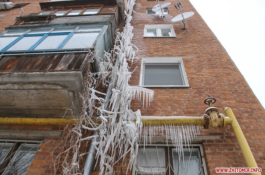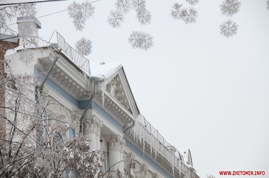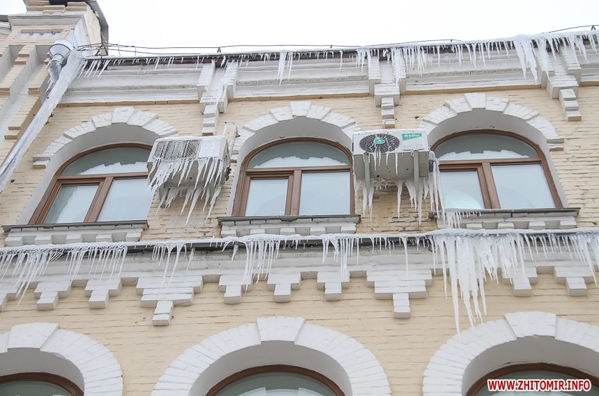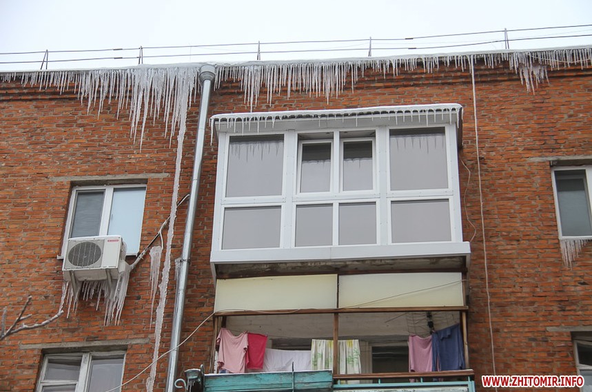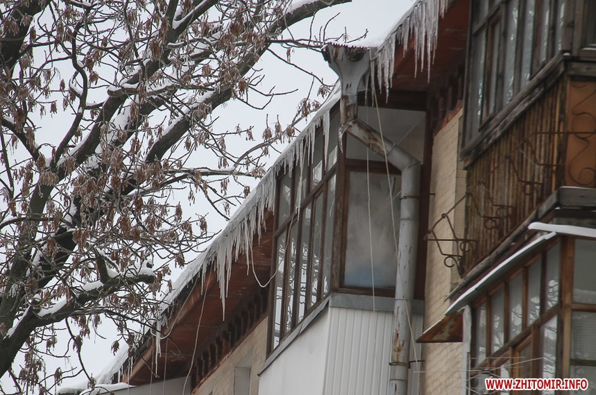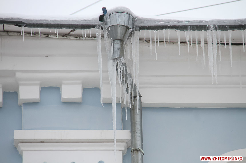 Іще в неділю, 27-го, січневий мороз змушував житомирян ховати носи в хутряних комірах, а вже з понеділка місто «заполонили» грона бурульок, які загрозливо звисають із балконів, дахів та фронтонів будинків. Льодяні бурулі утворилися й на ринвах та кондиціонерах. Біля деяких закладів небезпечні зони огороджують стрічками.