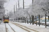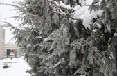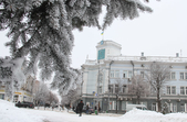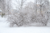 Будівлі, зупинки й дерева вкрилися інеєм.