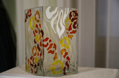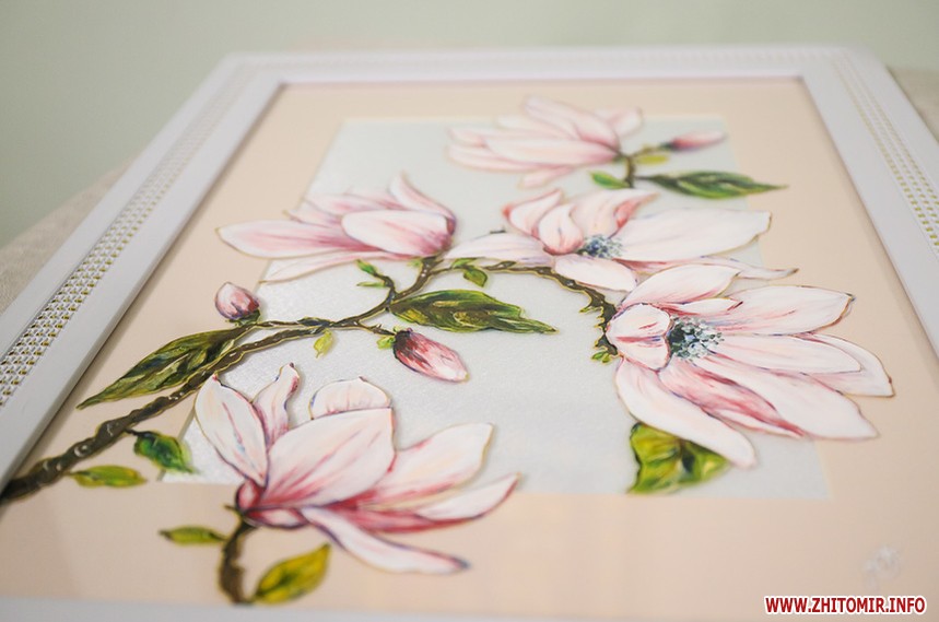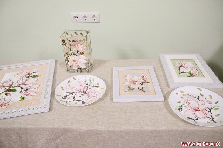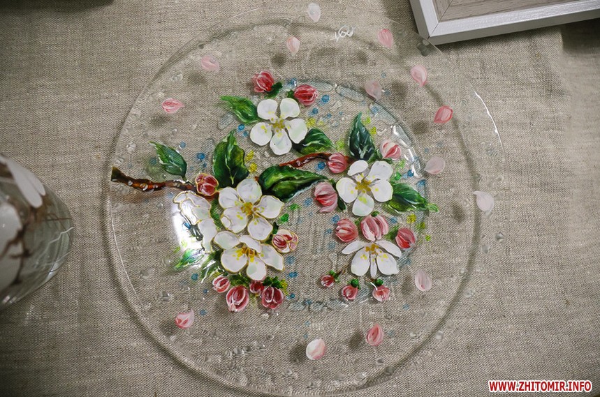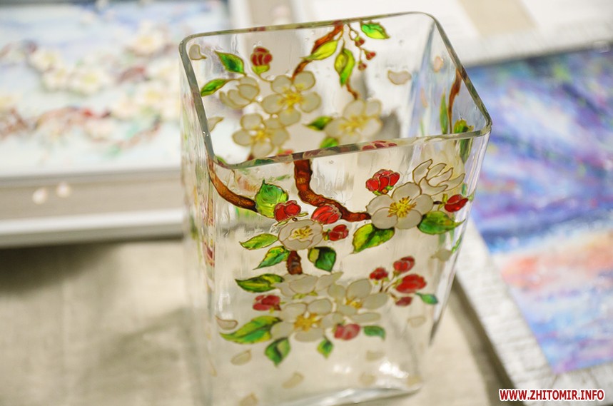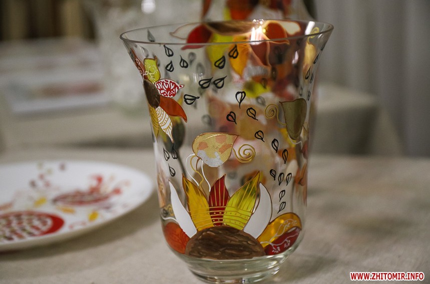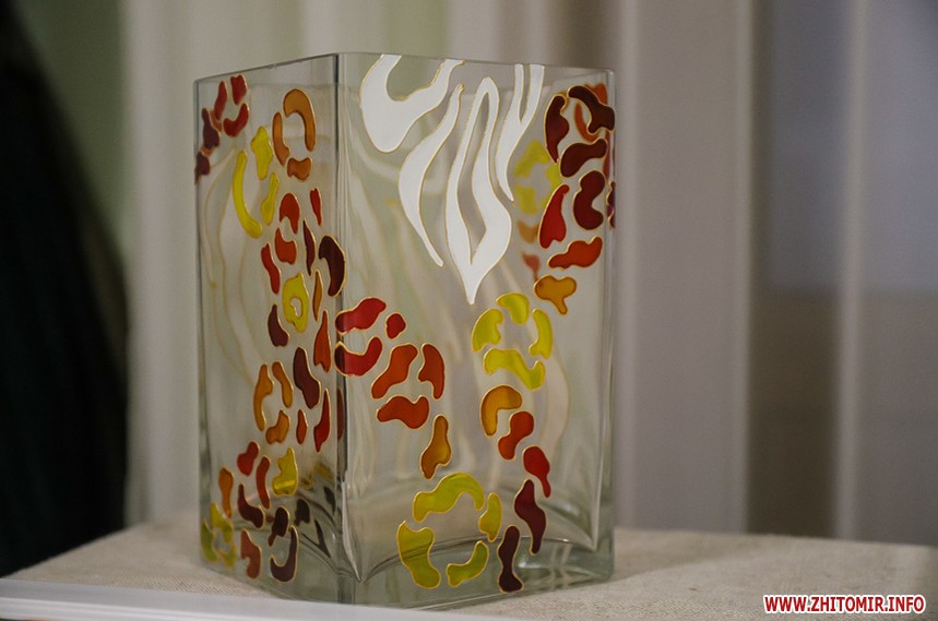 «В основному працюю на склі, але також розписую й інші поверхні. Роблю вітражі в інтер’єрі, розписую декоративні елементи: вази, картини – все, що пов’язане зі склом, все, що повинно бути яскравим», – каже майстриня.