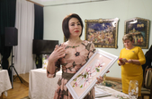 Орхідеї, троянди і квітуча яблунева гілка, що роняє ніжно-білі пелюстки – теплими весняними барвами буяють роботи майстрині народної творчості з вітражного розпису Ольги Карпінської.