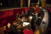 Ті спектаклі, де не задіяний оркестр у ямі чи на сцені – там музиканти задіяні у «Театральній вітальні» - зустрічають глядачів за півгодини до вистави. Репертуар – різноманітний.