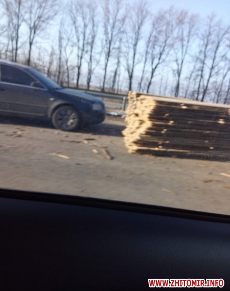 «О першій годині ночі, 19 лютого, надійшло повідомлення про дорожньо-транспортну пригоду без потерпілих на автодорозі Київ-Чоп, 173 кілометр. Водій, керуючи транспортним засобом Iveco, з причіпом, не впорався з керуванням та здійснив наїзд на колесовідбійник, що призвело до перекидання транспортного засобу, а також причіпа, де знаходилися дошки. На місці події працював екіпаж патрульної поліції. Також, під час оформлення ДТП патрульні забезпечили охорону місця, і рух напрямку до міста Рівного: інспектори спрямовували транспортні засоби по узбіччю, аби не допустити затору на дорозі», - розповіла співробітник патрульної поліції Житомирської області Тетяна Носадчук.