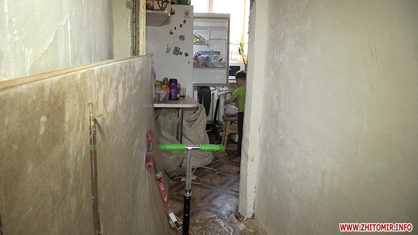 У Житомирі багатодітна родина військовослужбовця просить допомоги. Мало того, що сім’я тісниться у двокімнатній квартирі на менш як 42 кв.м, так ще й стан самого помешкання складно назвати «задовільним»: стіни сиплються, а через підвищену вологість вкриваються чорною пліснявою.