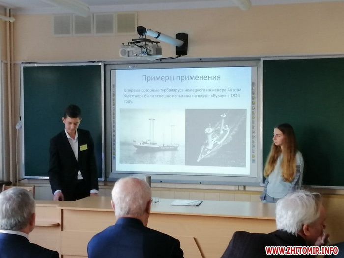«Вихованці Житомирського міського центру науково-технічної творчості учнівської молоді, гуртка «Основи науково-дослідницької діяльності» (керівник – Шубін Анатолій Григорович) Кіпчук Анна та Закревський Олександр, учні ЗОШ № 30, увійшли до складу збірної команди України, яка з 22 по 24 лютого брала участь у Міжнародній конференції-конкурсі робіт дослідницького характеру з астрономії, біології, інформатики, математики, фізики та хімії. Вони представили екологічний проект, що стосується безпеки пішоходів за межами населених пунктів. Школярі запропонували встановити вітряки на роздільних полосах автошляхів. Вітряки працюватимуть під час руху автомобілів за рахунок ефекту Магнуса та вироблятимуть енергію, яку можна направити на освітлення дорожніх знаків та підсвітки на відбійниках», - йдеться у повідомленні.
