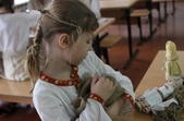 На фото учні 8-Б та 7-Б класів під керівництвом вчителів Тетяни Андріївни Бухштаб, Оксани Володимирівни Сіренко та Наталії Василівни Коломієць готуються до древлянського ярмарку.