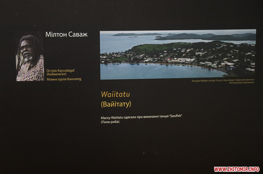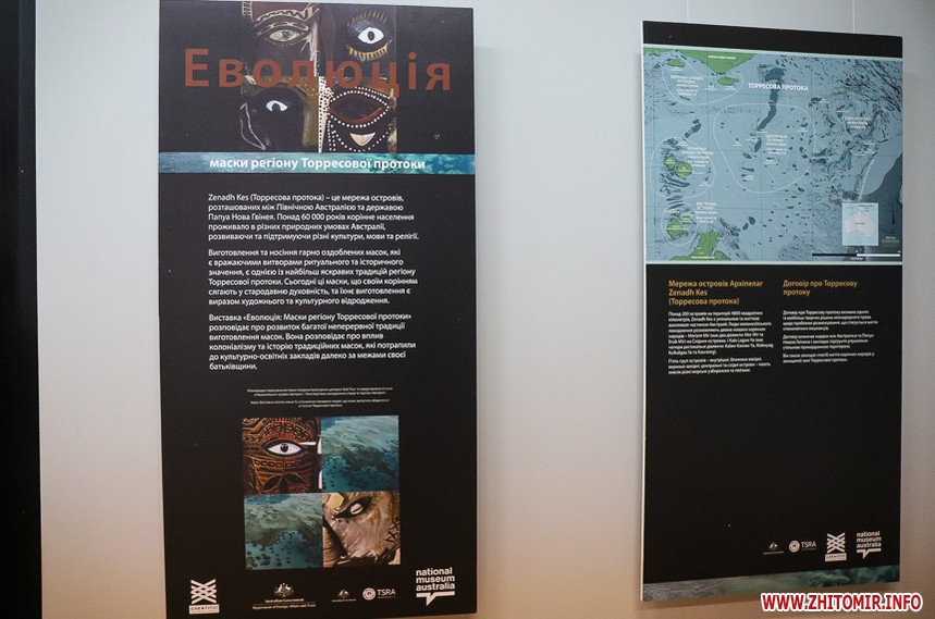 У Житомирському обласному краєзнавчому музеї 6 березня посольство Австралії в Україні презентувало інформаційну виставку «Еволюція: Маски Торресової протоки».