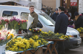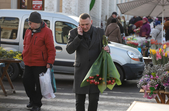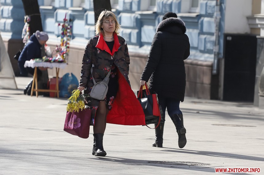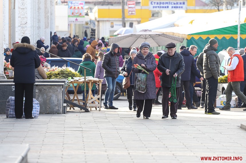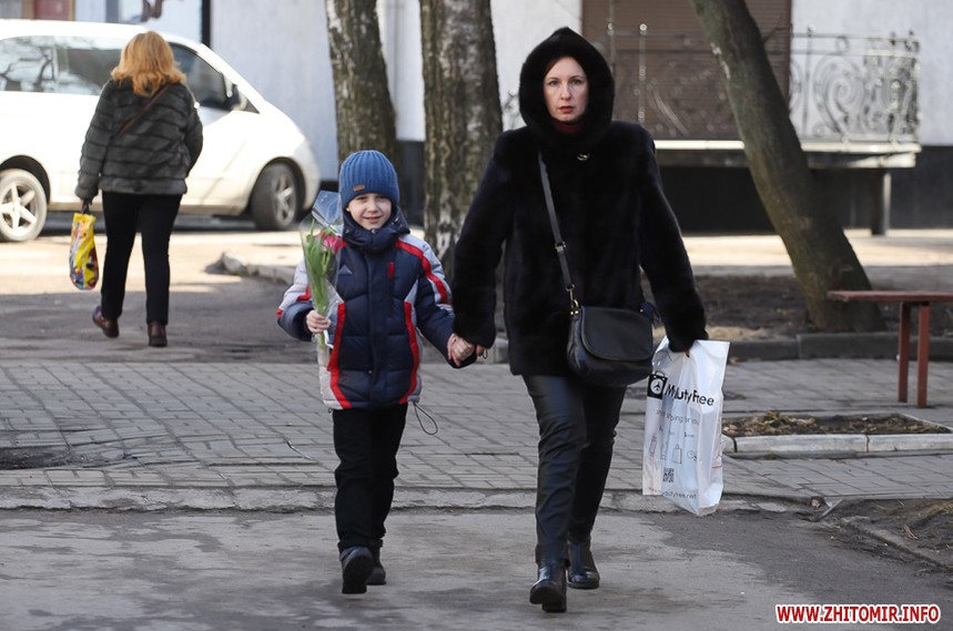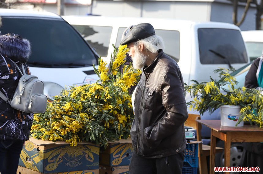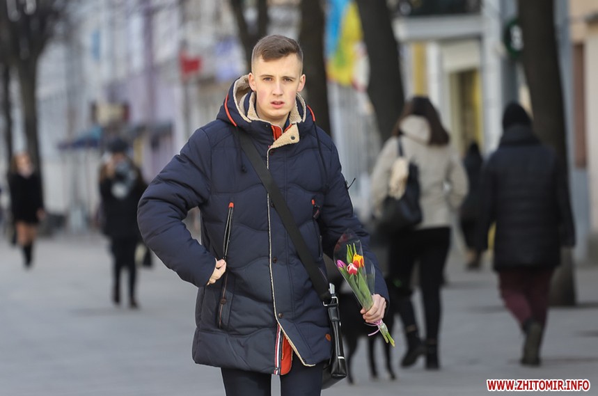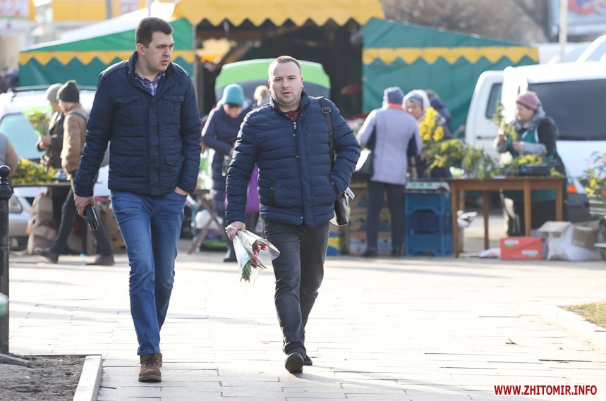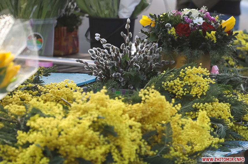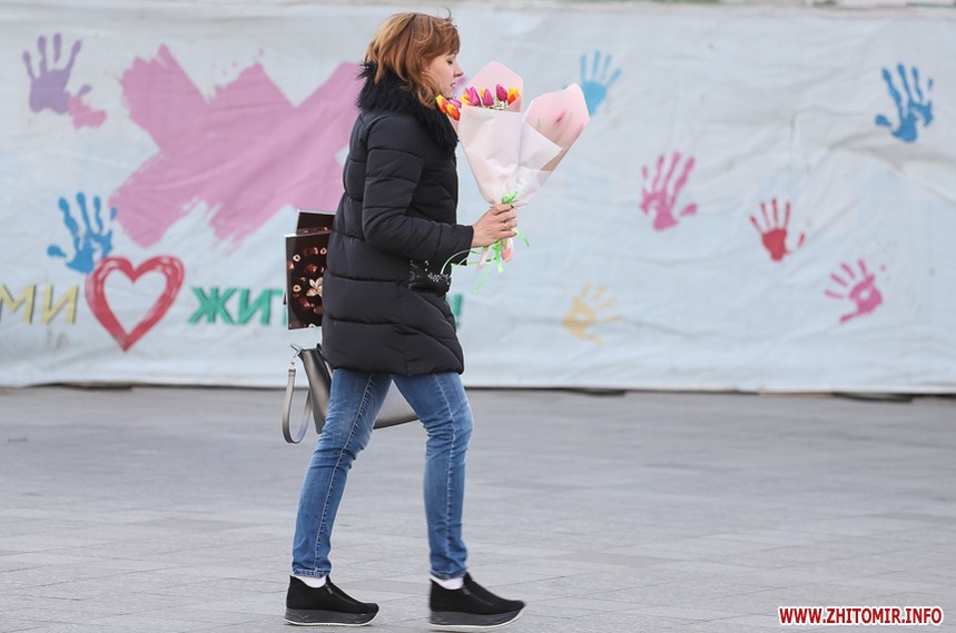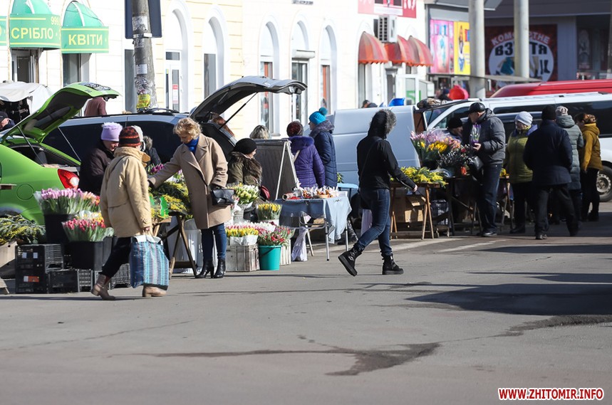 Квіти – традиційний дарунок жінкам до 8 Березня, тож у переддень свята чоловіки в Житомирі від ранку «атакують» точки продажу барвистих символів весни та ніжності.