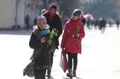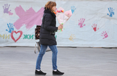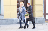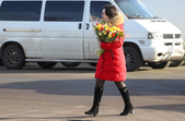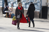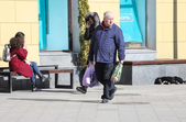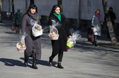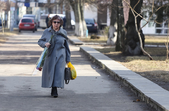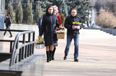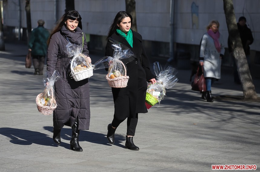 Уже з подарунками вулицями крокують і жінки: на обличчі – усмішка, в руках – квіти.