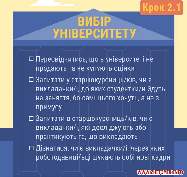 - Вибір університету: про що запитати нинішніх студентів/студенток вишу, які прохідні бали мають бути в закладі тощо.