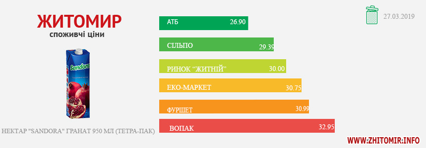 МОНІТОРИНГ ЗДІЙСНЕНО МЕТОДОМ КОНТРОЛЬНОЇ ЗАКУПІВЛІ, У МІСЦЯХ ПРОДАЖУ: AТБ, пр. Миру, 15 А, Ринок "Житній", майдан Житній ринок, Сільпо, майдан Житній ринок, 1, ЕКО-маркет,вул. Мала Бердичівська, 2/7, Вопак, вул. Київська, 87,Фуршет, вул. Вітрука, 9 а