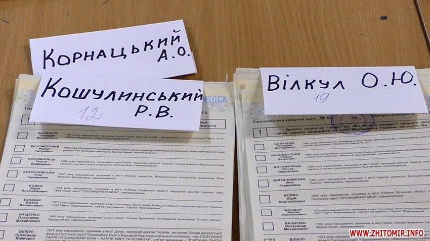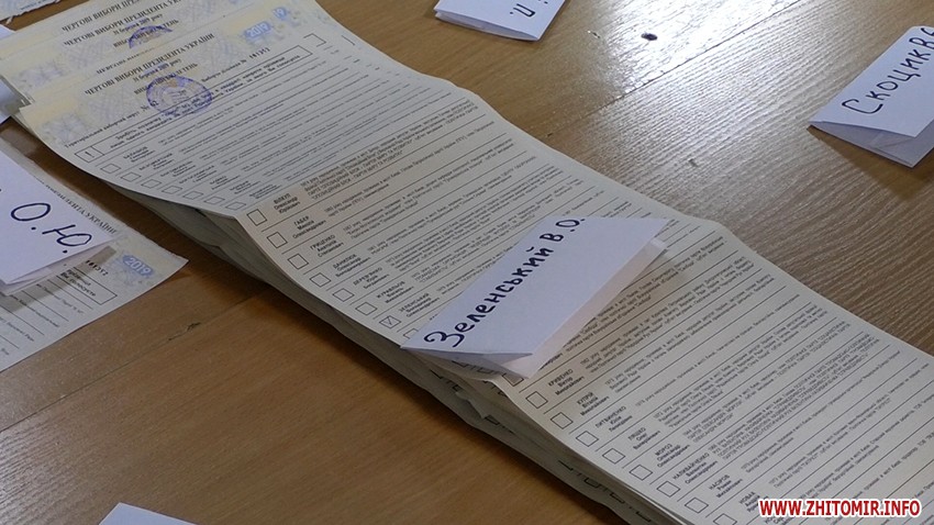 Як повідомляв Житомир.info, за даними ЦВК, явка по Житомирській області становила 64,58%, найактивніші були виборці округу №62 (Житомир): зі 164 947 виборців, внесених до списків на момент завершення голосування, отримали виборчі бюлетені 109 439: явка склала 66,34%. За даними екзит-полів, у другий тур виборів виходять Володимир Зеленський та Петро Порошенко.