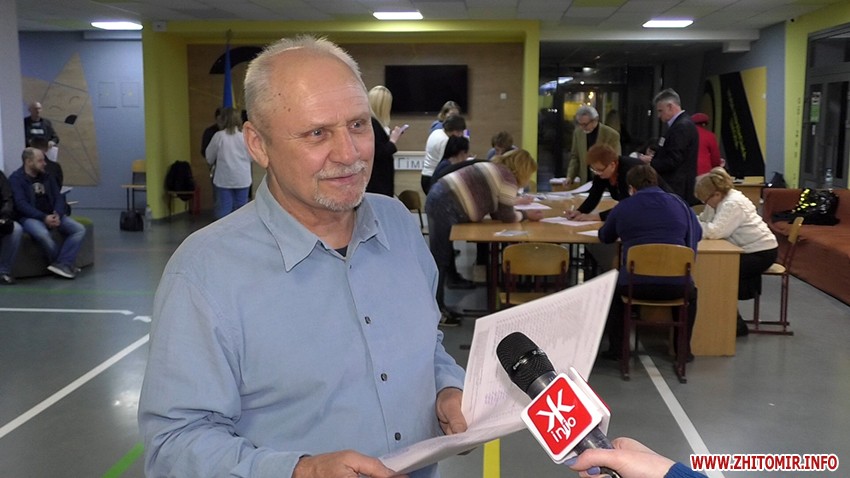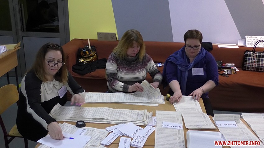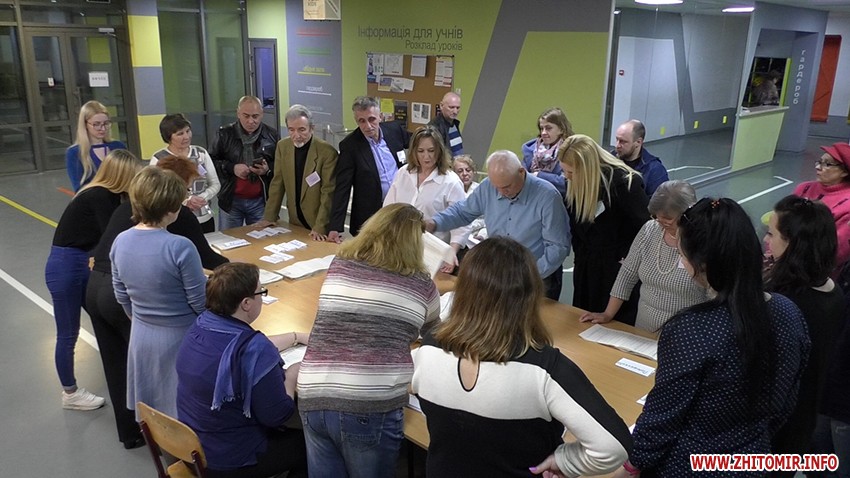 У Житомирі на виборчій дільниці №181352, яка знаходиться у гімназії №3 на вул. Михайла Грушевського, 8, розповіли про результати підрахунку голосів та явку виборців. Лідером серед кандидатів на цій дільниці став Володимир Зеленський, далі йде Ігор Смешко, після нього із різницею у 6 голосів Петро Порошенко. Про це повідомив голова виборчої дільниці №181352 Юрій Станкевич.
