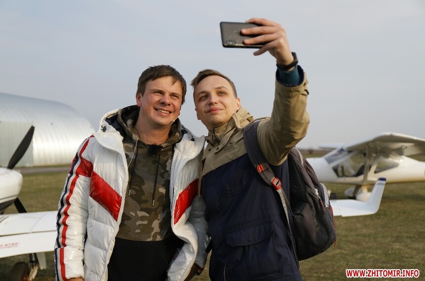 Маршрут пролягає і через житомирський аеродром, де 5 квітня з Дмитром Комаровим зустрілись житомирські журналісти.