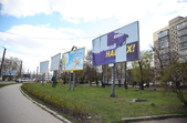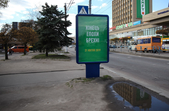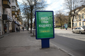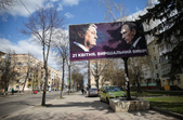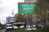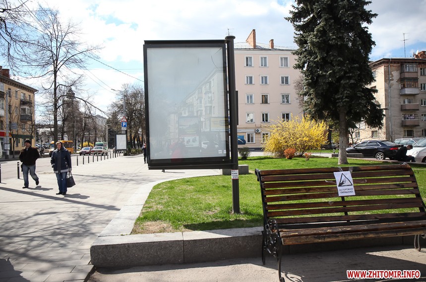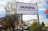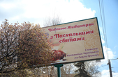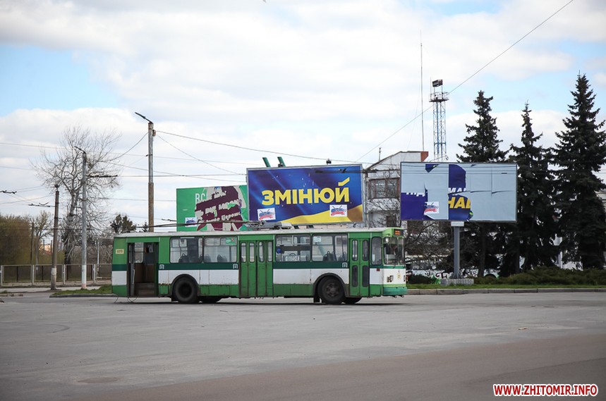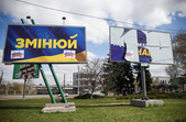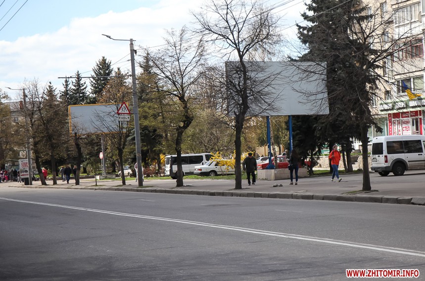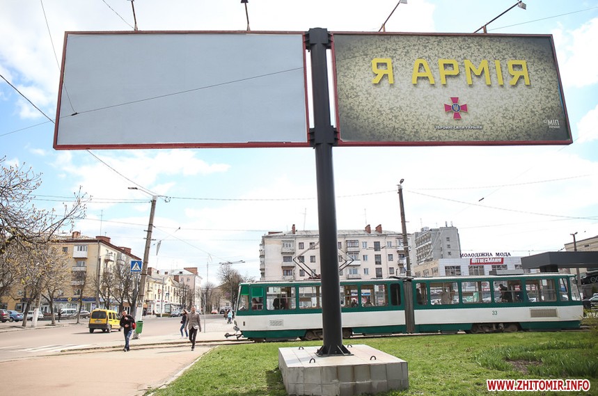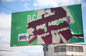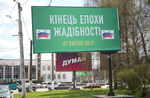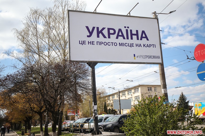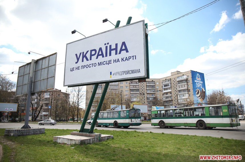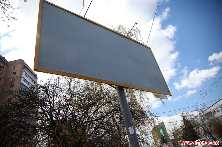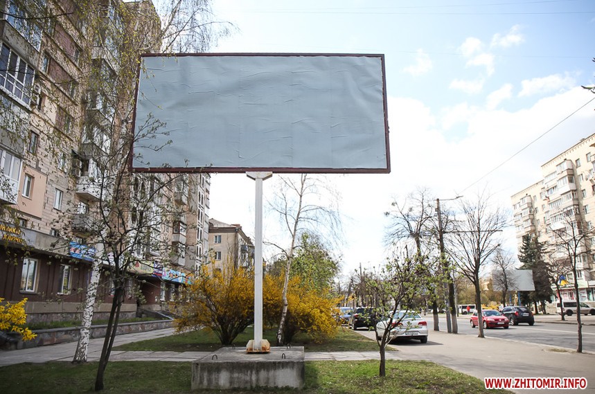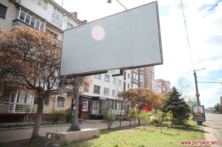 Також залишилося багато реклами, яку кандидати в президенти розвішували перед «днем тиші». Деякі з цих бордів вже обдерті та мають непривабливий вигляд, на деяких з’явилися наліпки з російським прапором, які ліпили на політичну рекламу в Житомирі та Бердичеві під час підготовки до голосування 31 березня. Наліпки з російським триколором також є й на нових «зелених» білбордах одного з кандидатів в президенти.