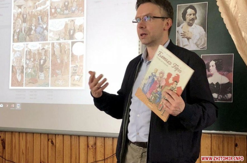 Кирило Горішний – француз за походженням, який протягом останнього десятиліття проживає та працює у Львові, представив учням та колективу школи шедевр французької літератури ХІХ століття у вигляді графічного роману українською мовою – «Батько Горіо» Оноре де Бальзака.