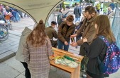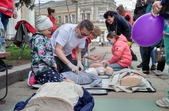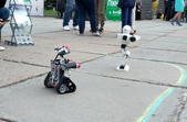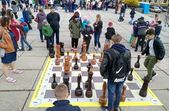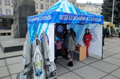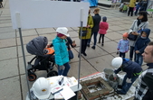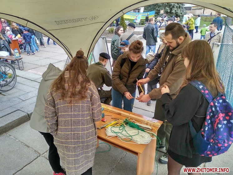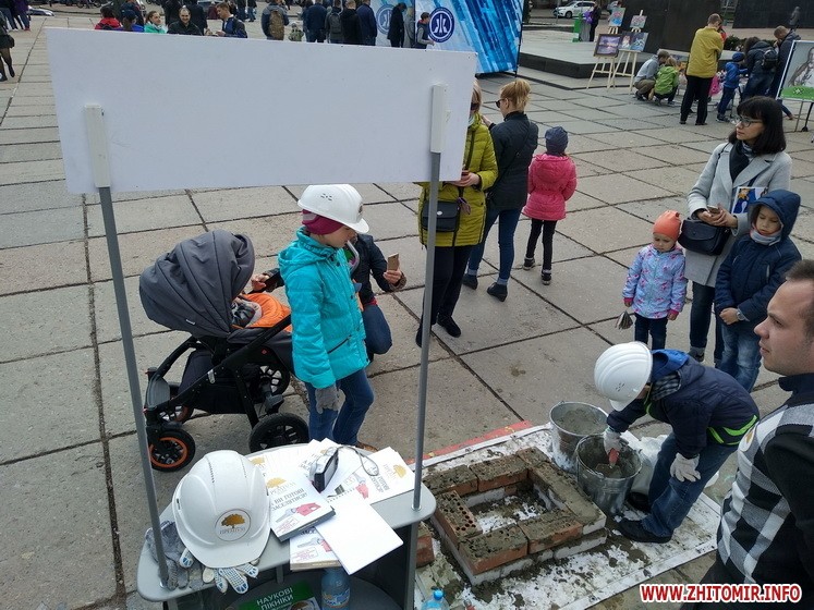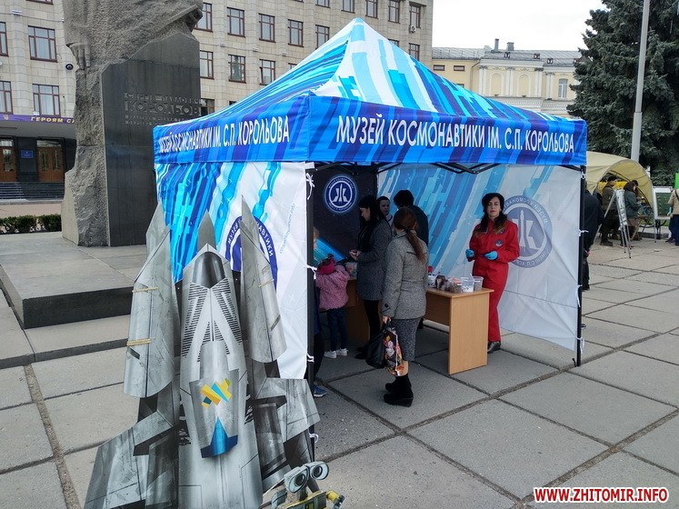 Неподалік, на майдані Корольова, розгорнулась не менш цікава локація, особливо для допитливих дітлахів та підлітків. Тут 20 квітня відбуваються «наукові пікніки», де кожен бажаючий може навчитися надавати першу допомогу, в’язати морські вузли чи вкладати цеглу. Можна поспостерігати за роботами, провести власний дослід чи експеримент, або ж пограти в шахи на гігантській шаховій дошці.