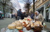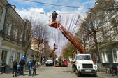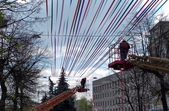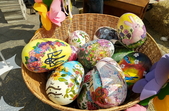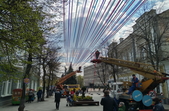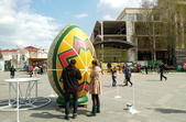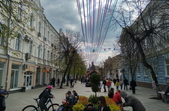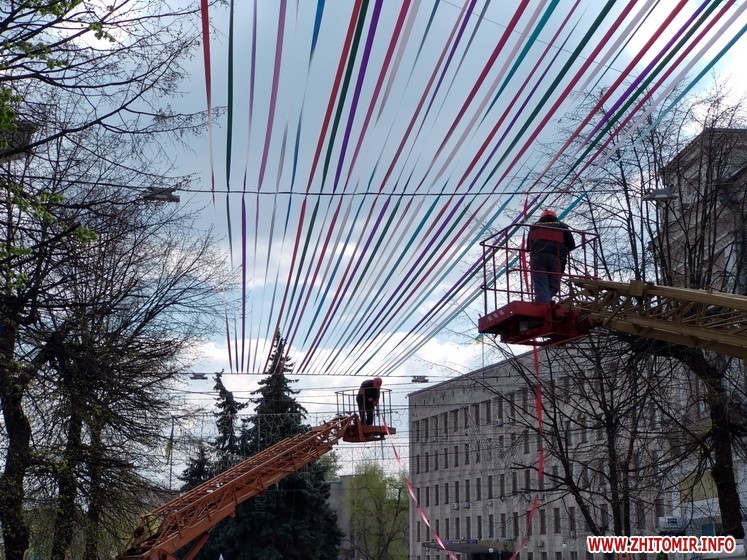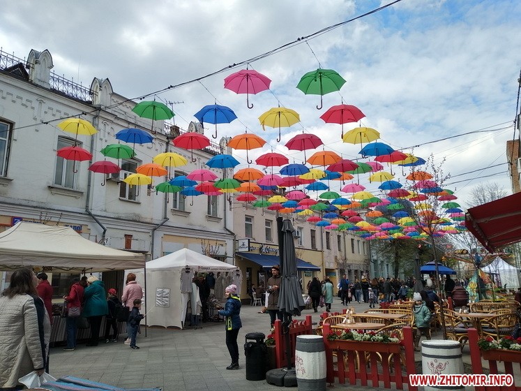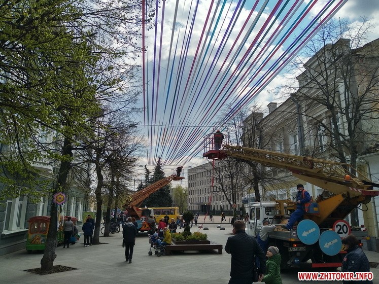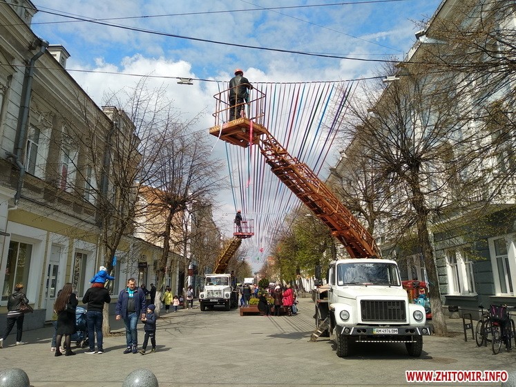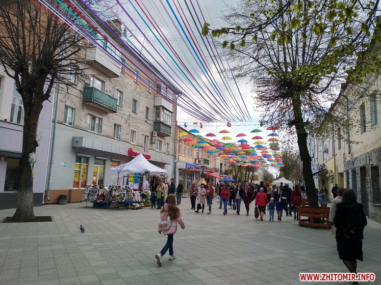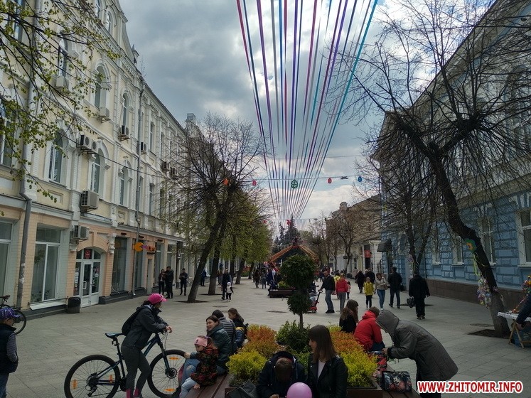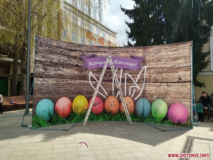 Щоправда, на вулиці Михайлівській з самого ранку активно працює техніка та метушаться робітники. Так у Житомирі намагаються встигнути до католицького Великодня прикрасити головну святкову локацію міста: розвішують різнокольорові стрічки, чіпляють крашанки, кошики та кроликів, розкривають яскраві парасольки, фарбують гігантські писанки та прикрашають фотозони. Тож прогулюючись Михайлівською, де вже почав діяти святковий ярмарок, варто бути обережними.