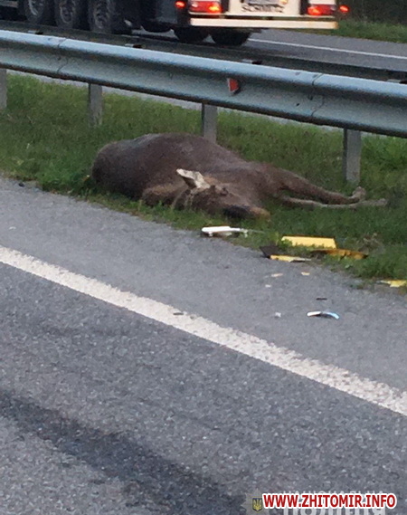 Як повідомляв Житомир.info, 4 травня 2018 року о 1 годині ночі на трасі Київ-Ковель у Житомирській області Peugeot збив лося.