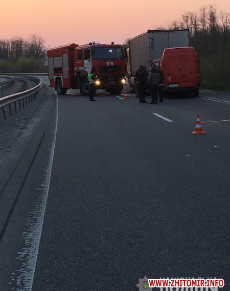 «Дорожньо-транспортна пригода сталася на 234 кілометрі траси Київ-Чоп, поблизу с. Майстрова Новоград-Волинського району, близько 5:50.