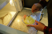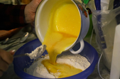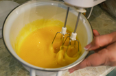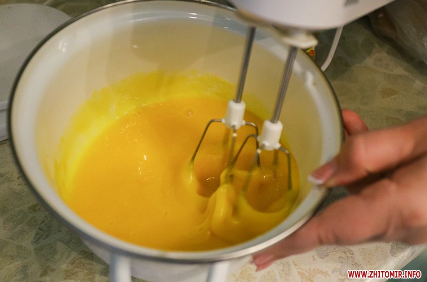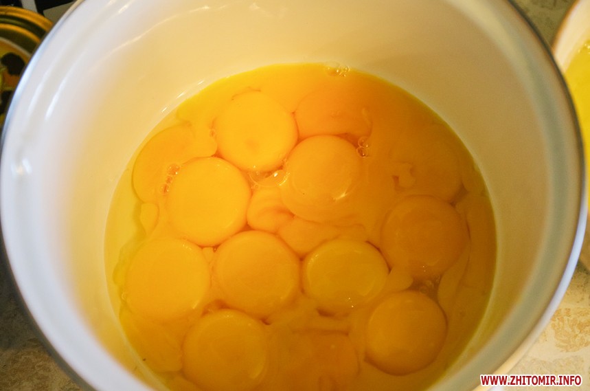 Відділяємо 15 жовтків та збиваємо їх з цукром і сіллю.