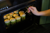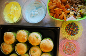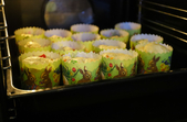Форми наполовину наповнити тістом, попередньо змастивши їх рослинною олією, та залишити на 30-40 хвилин, щоб тісто підросло.