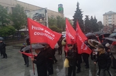 Пенсіонери розгорнули червоні прапори з написами «Наша мета соціалізм», «Соціалізм наше все» і рушили колоною до офісу Компартії, який знаходиться на вулиці Леха Качинського.