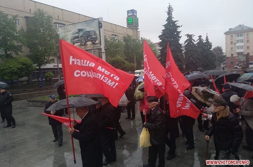 У Житомирі 1 травня на майдані Соборному, зібралися пенсіонери й прихильники Компартії – «Комітет платників податків», аби відзначити свято весни та праці.