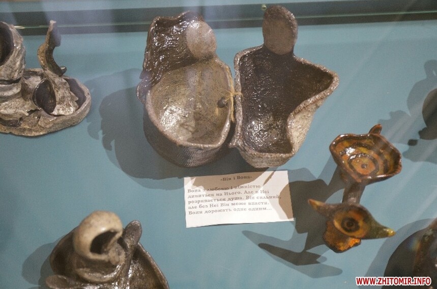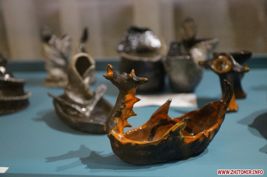 Керамічний посуд, сувеніри та навіть прикраси – в Домі української культури в Житомирі 6 травня відкрилась виставка авторської кераміки Олени Цвєткової.