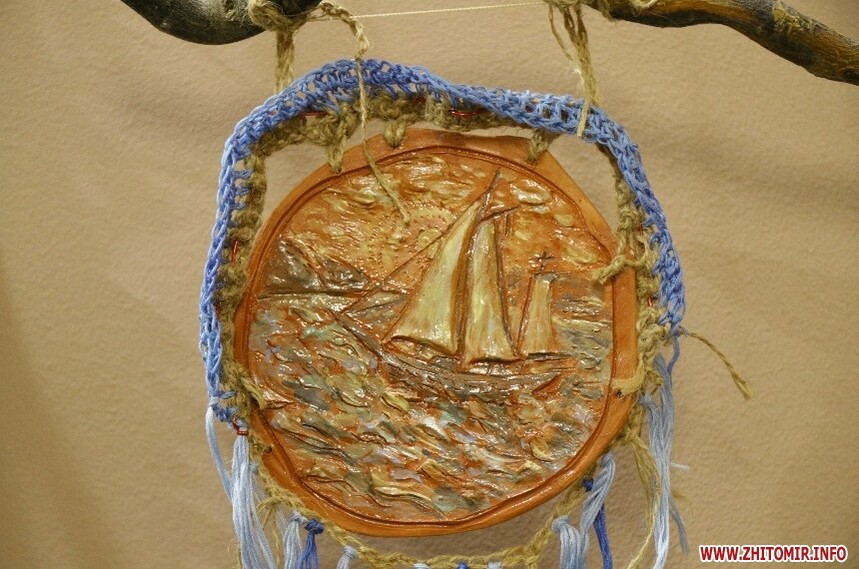 Серед робіт майстрині – метелики та незвичайні намиста. Особливо оригінальністю вирізняється робота «Він і Вона» – два «полумиски» чудернацької форми, зв’язані мотузкою.